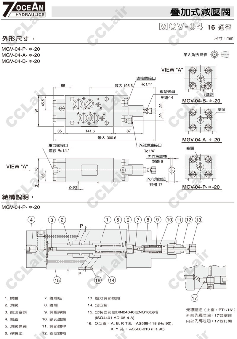 MGV-04-P,MGV-04-A,MGV-04-B,MGV-04-B-1-20,MGV-04-P-3-10,MGV-04-A-2-20,7OCEAN七洋疊加式壓力減壓閥