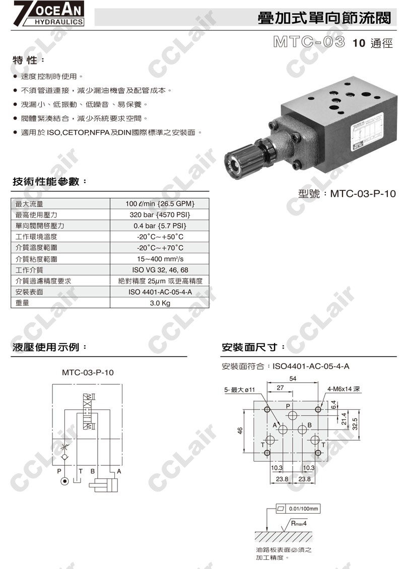 MTC-03-P-10,MTC-03-P-20,7OCEAN七洋疊加式單向節(jié)流閥