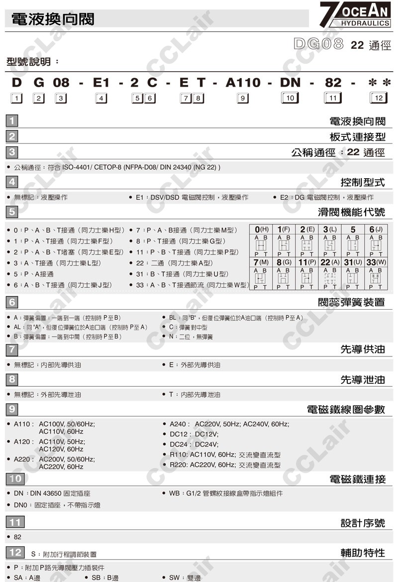 DG08-E1,DG08-E2,DG08-E1-11BL-ET-A110-DN-82,DG08-E2-11BL-E-A120-DN-82,7OCEAN七洋電液換向閥