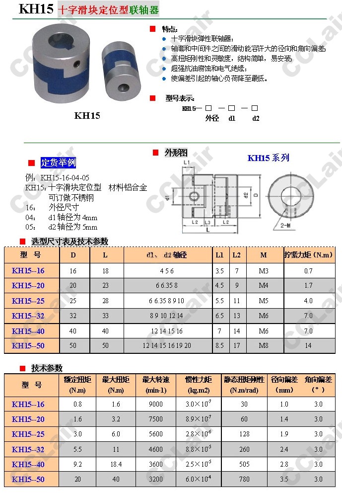 KH15-16,KH15-20,KH15-25,KH15-32,KH15-40,KH15-50,十字滑塊定位型聯(lián)軸器