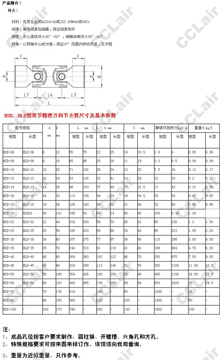 HSD-06,HSD-08,HSD-12,HSD-20,HSD-30,HSD-45,HSD-50,HSD-60,HSD-70,HSD-80,HSD-100,雙十字萬向聯(lián)軸器