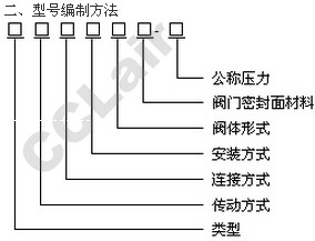| 連接形式 | 代號 | 安裝方式 | 代號 | 閥體形式 | 代號 | 閥座密封面材料 | 代號 |
