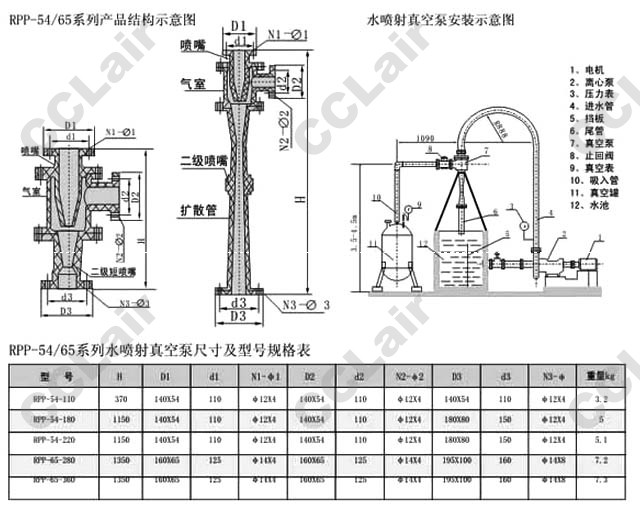 RPP-54-90,RPP-54-110,RPP-54-180,RPP-54-220,RPP-65-280,RPP-65-360,增強聚丙烯水噴射真空泵