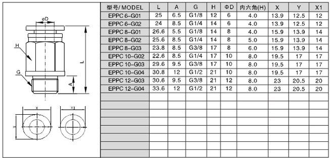 EPPC6-G01,EPPC8-G03,EPPC10-G02,EPPC12-G03,EPPC8-G01,EPPC10-G03, 塑料接頭