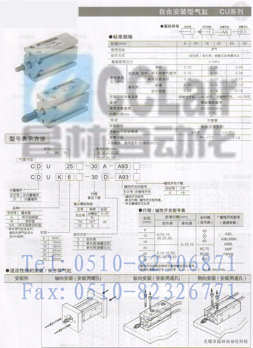 CDUW10-5D,CDUW10-10D,CDUW10-15D,自由安裝型氣缸