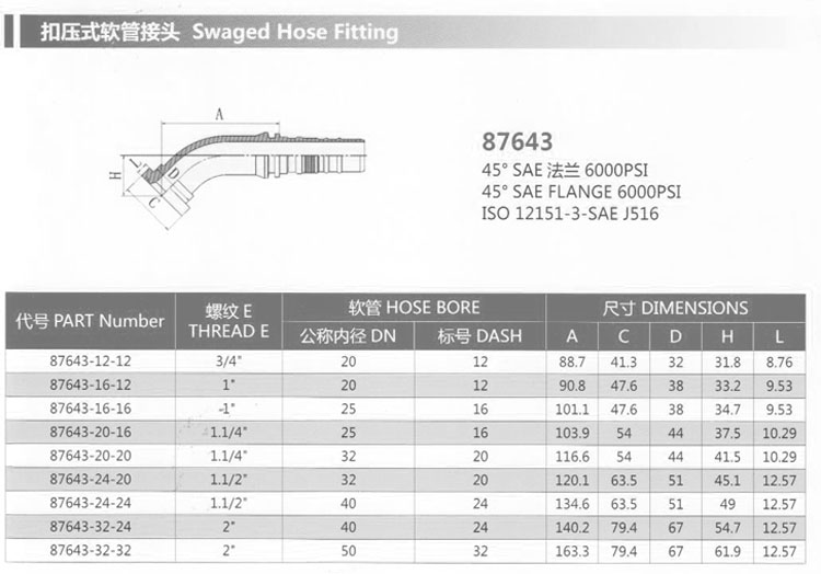 87643-12-12,87643-16-12,87643-20-16,87643-24-20,87643-32-24,扣壓式軟管接頭