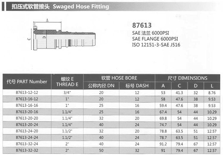 87613-12-12,87613-16-12,87613-20-16,87613-24-20,87613-32-24,扣壓式軟管接頭