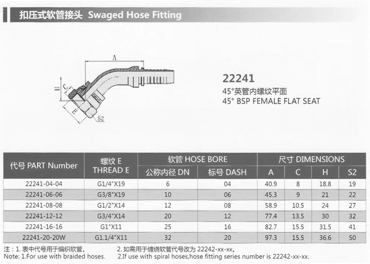 22241-04-04,22241-06-06,22241-08-08,22241-12-12,22241-16-16,22241-20-20W,扣壓式軟管接頭