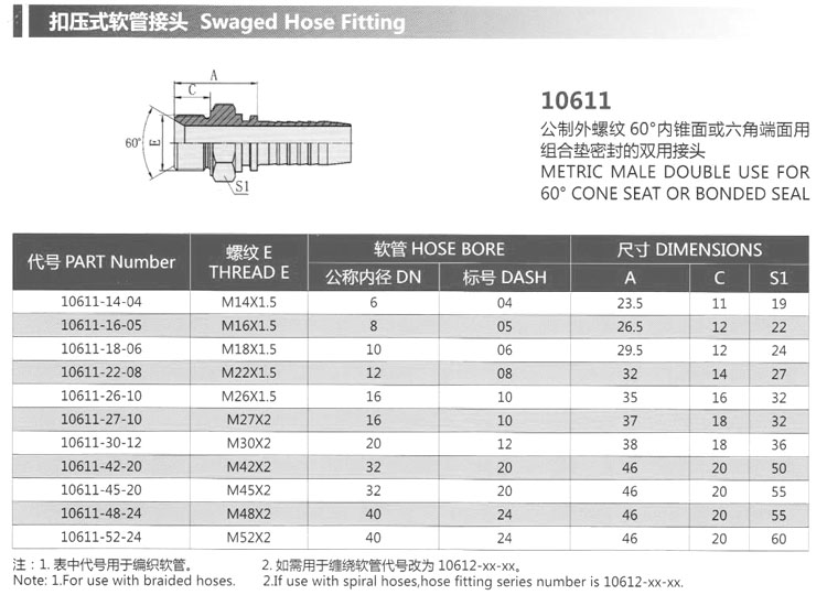 10611-14-04,10611-22-08,10611-30-12,10611-42-20,10611-52-24,扣壓式軟管接頭