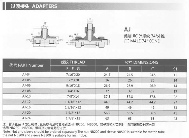 AJ-04,AJ-05,AJ-06,AJ-08,AJ-10,AJ-12,AJ-16,AJ-20,AJ-24,過(guò)渡接頭