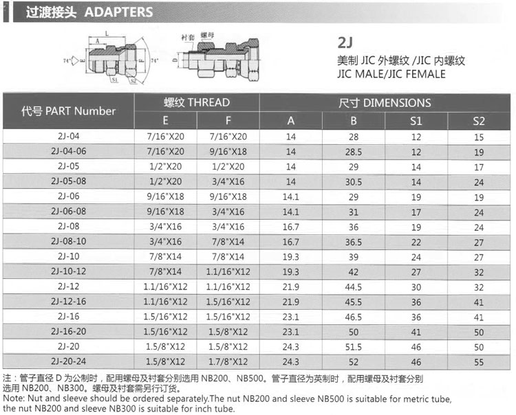 2J-04,2J-05,2J-06,2J-08,2J-10,2J-12,2J-16,2J-20,2J-20-24,過渡接頭