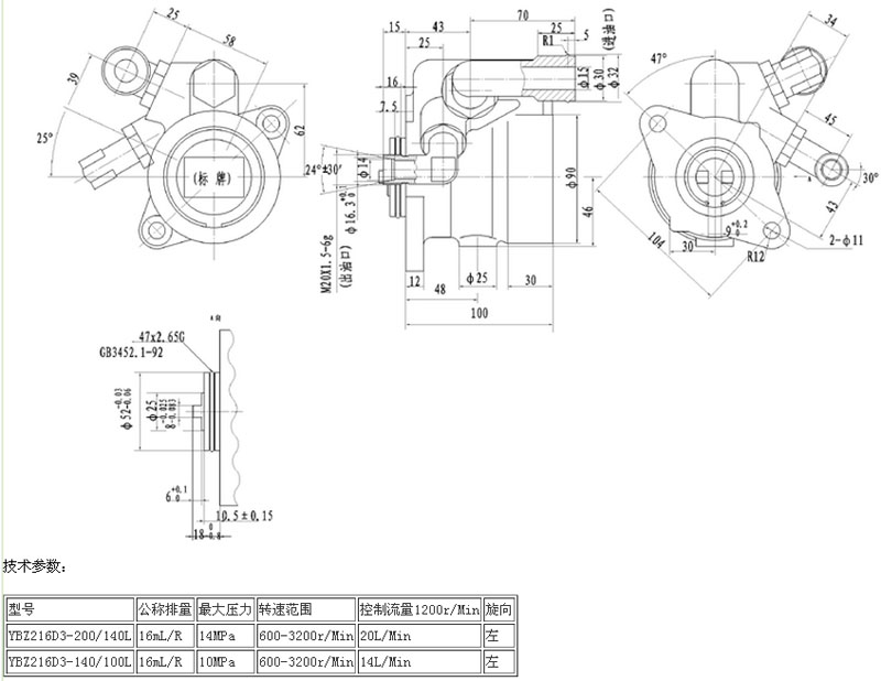 YBZ216D3-200/140L,YBZ216D3-140/100L,葉片泵