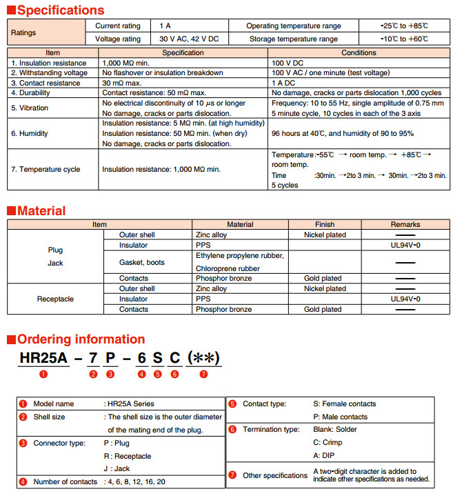 HR25A-7P-4S,HR25A-7P-6S,HR25A-7P-8S,HR25A-9P-12S,HR25A-9P-16S,HR25A-9P-20S,