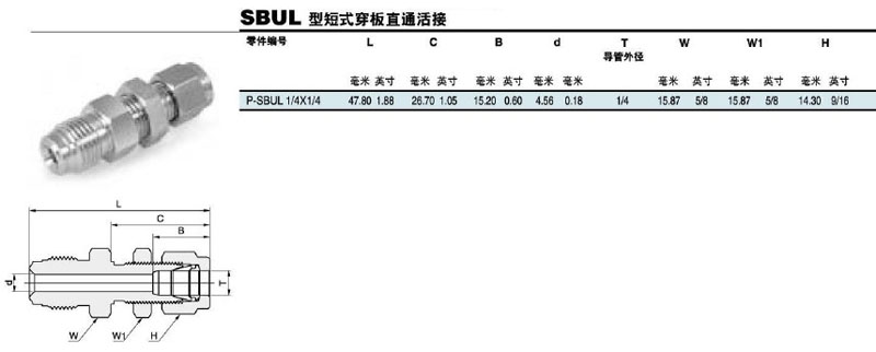 P-SBUL-1/4*1/4,短式穿板直通活接頭