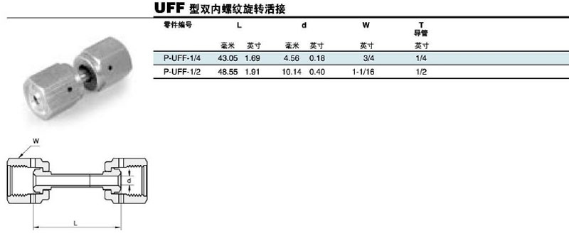 P-UFF-1/4,P-UFF-1/2,內(nèi)螺紋旋轉(zhuǎn)活接頭