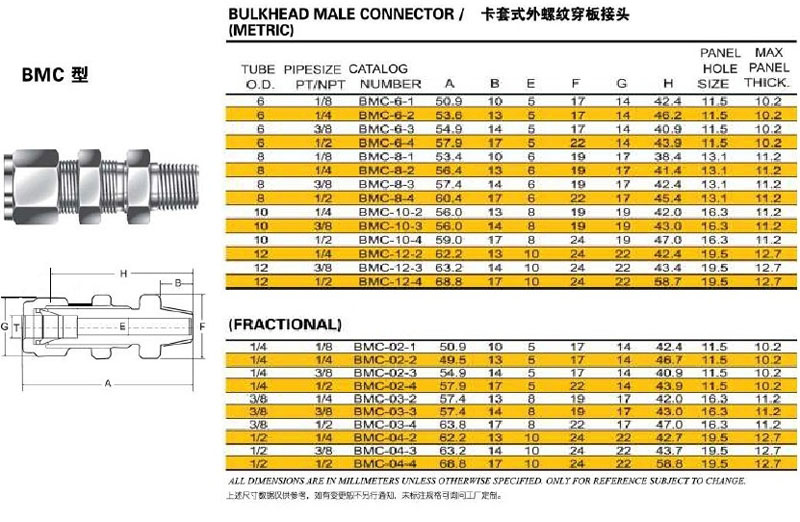 BMC-6-1,BMC-8-4,BMC-10-2,BMC-12-2,BMC-02-4,BMC-03-2,卡套式外螺紋穿板接頭