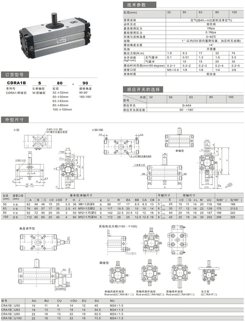 CDRA1BS63-90,CDRA1BS80-90,CDRA1BS100-90,CDRA1BS63-180,CDRA1BS80-180,