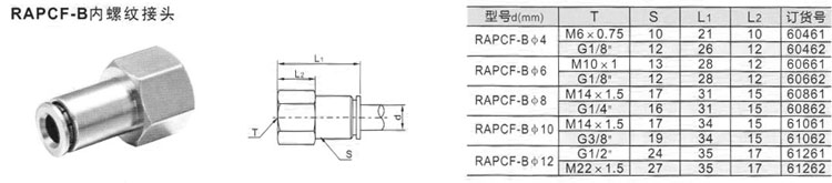 RAPCF-B4,RAPCF-B6,RAPCF-B8,RAPCF-B10,RAPCF-B12,內(nèi)螺紋接頭