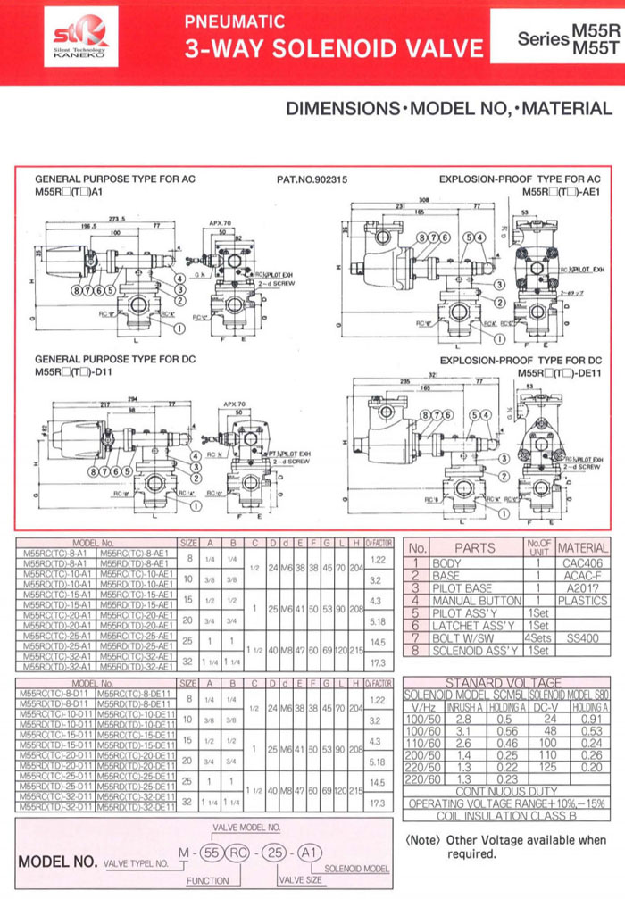 M55RC-8-A1,M55TC-8-A1,M55RD-8-A1,M55TD-8-A1,M55RC-8-D11,M55TC-8-D11,KANEKO氣動(dòng)3路電磁閥