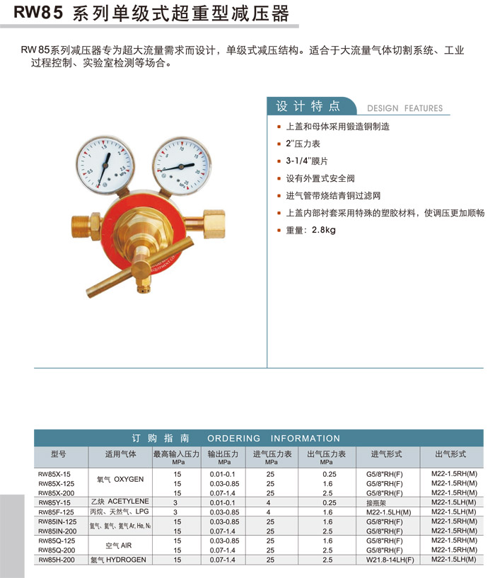 RW85X-15,RW85X-125,RW85X-200,RW85Y-15,RW85F-125,RW85IN-125,RW85Q-125,RW85Q-200,RW85H-200,單級(jí)式超重型減壓器 |