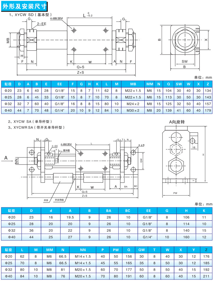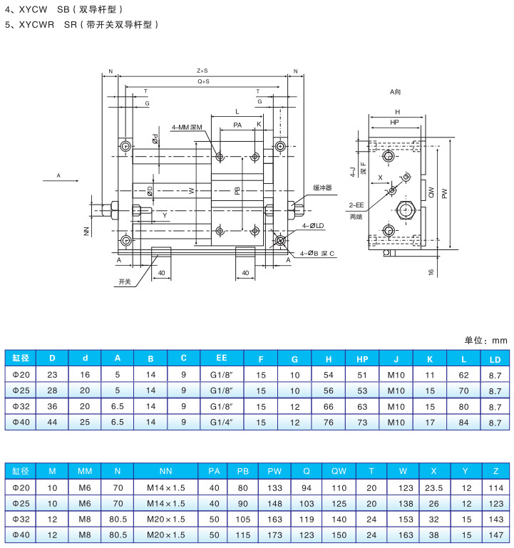 XYCWSD20*1500,XYCWSA25*2000,XYCWSB32*2000,XYCWRSA40*2000,無(wú)桿氣缸