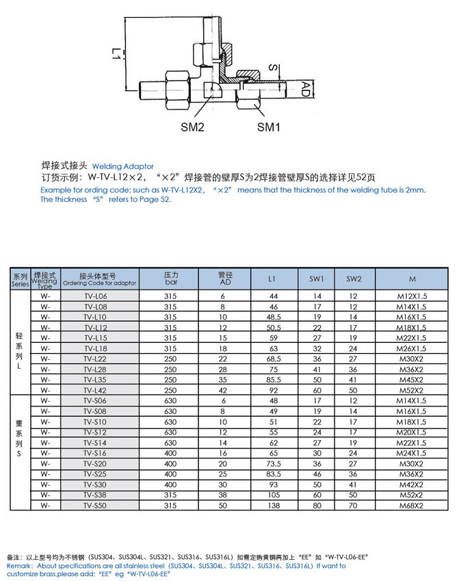 W-TV-L06,W-TV-L10,W-TV-L22,W-TV-L42,W-TV-S30,W-TV-S38,W-TV-S50,三通中間焊接式接頭 |