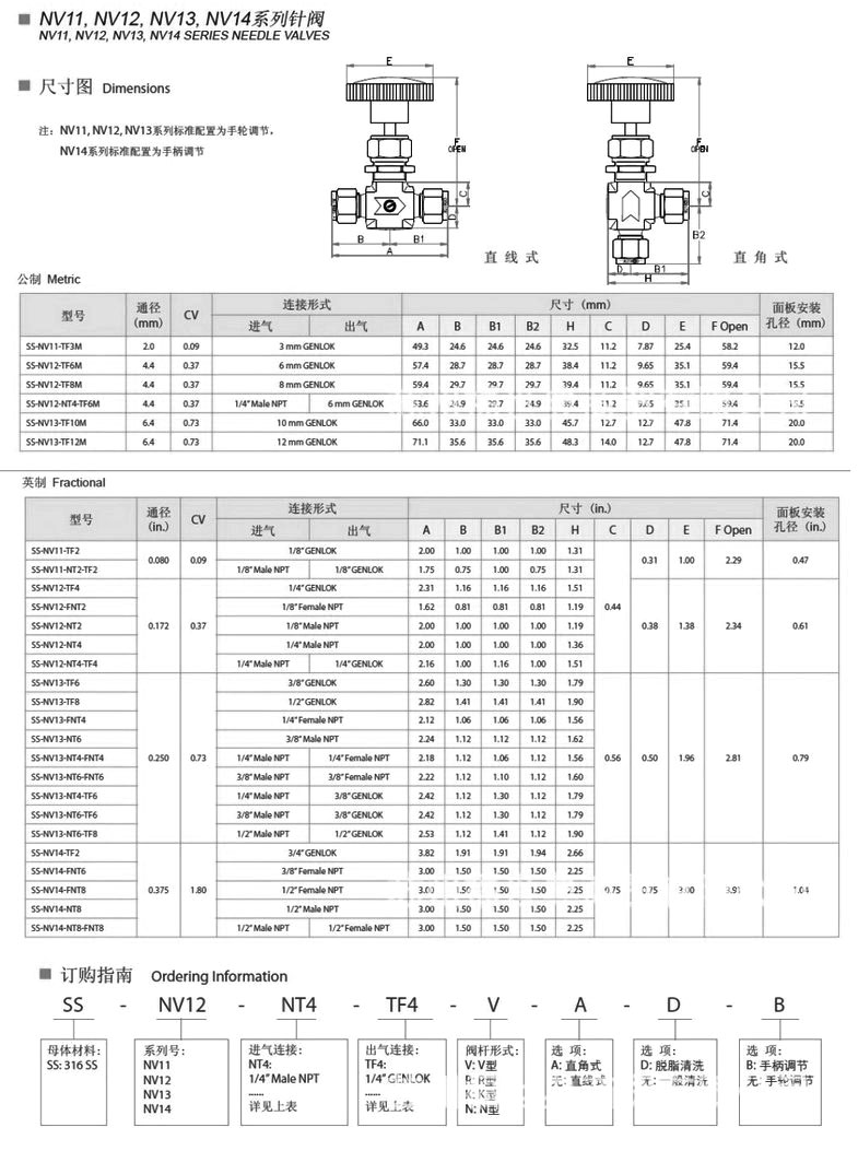 SS-NV11-TF3M,SS-NV12-TF6M,S-NV13-TF12M,SS-NV14-FNT8,不銹鋼針閥 |