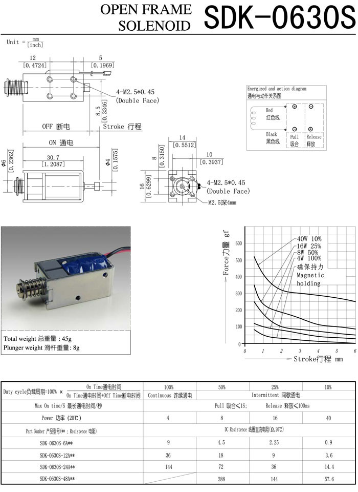SDK-0630S-6A,SDK-0630S-12A,SDK-0630S-24A,SDK-0630S-48A,直動電磁鐵 |