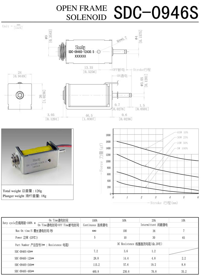 SDC-0946S-6A,SDC-0946S-12A,SDC-0946S-24A,SDC-0946S-48A,直動電磁鐵 |