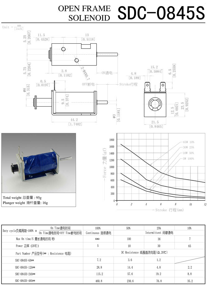 SDC-0845S-6A,SDC-0845S-12A,SDC-0845S-24A,SDC-0845S-48A,直動(dòng)電磁鐵