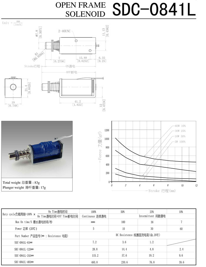 SDC-0841L-6A,SDC-0841L-12A,SDC-0841L-24A,SDC-0841L-48A,直動(dòng)電磁鐵