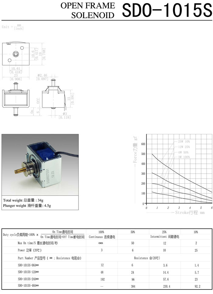 SDO-1015S-06A,SDO-1015S-12A,SDO-1015S-24A,SDO-1015S-48A,直動電磁鐵 |