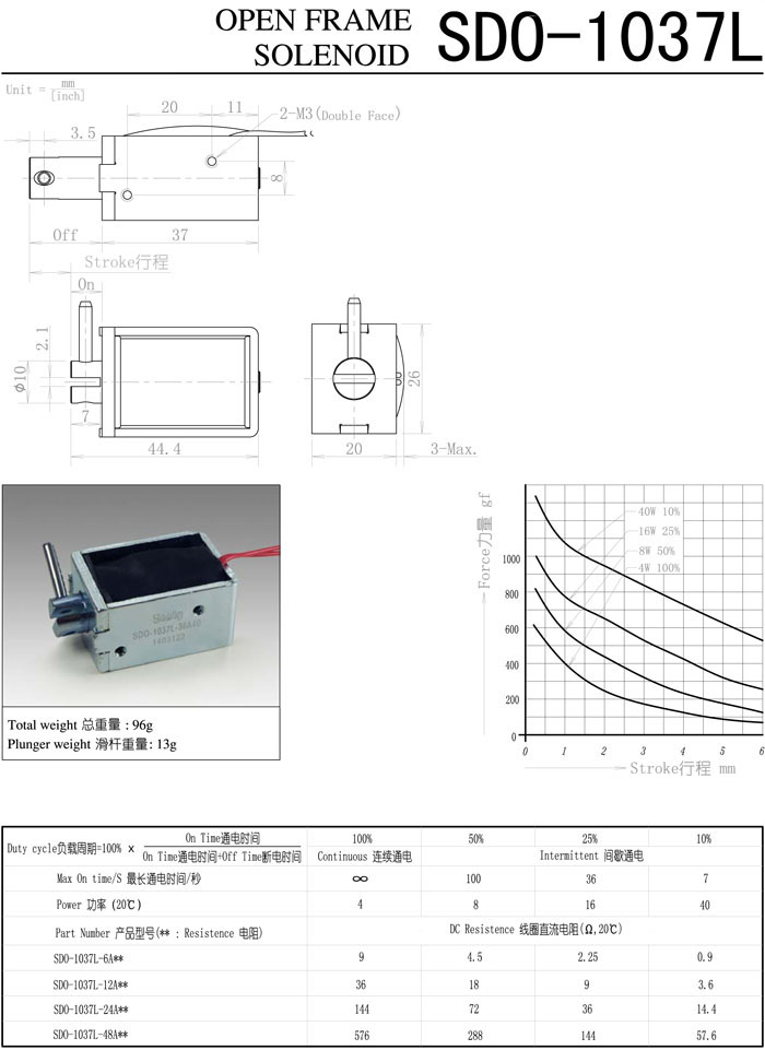 SDO-1037L-6A,SDO-1037L-12A,SDO-1037L-24A,SDO-1037L-48A,直動電磁鐵 |