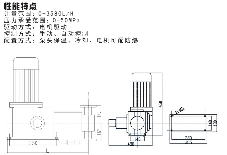 | 型   號 | 流量(L/h) | 排出壓 (mpa) | 柱塞 直徑 | 行程(mm) | 往復次數(shù)(CrP) | 電機功率(kW) | 進出口直徑(mm) | 安裝尺寸 | 重量 (kg) | |||||