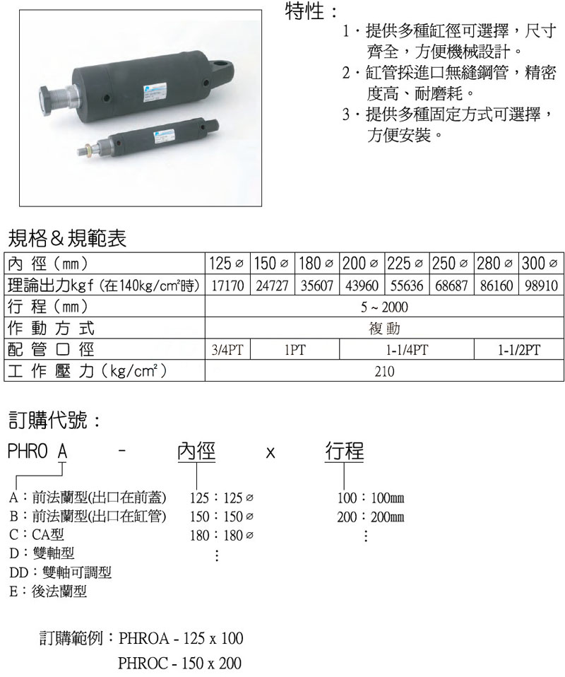 PHROA-125,PHROB,PHROC,PHROD,PHRODD,PHROE,panix圓型油壓缸.