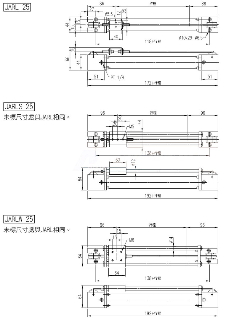 | JARL-25,JARL-40,JARLS-25,JARLS-40,JARLW-25,JARLW-40,panix纜繩式無桿氣缸 |