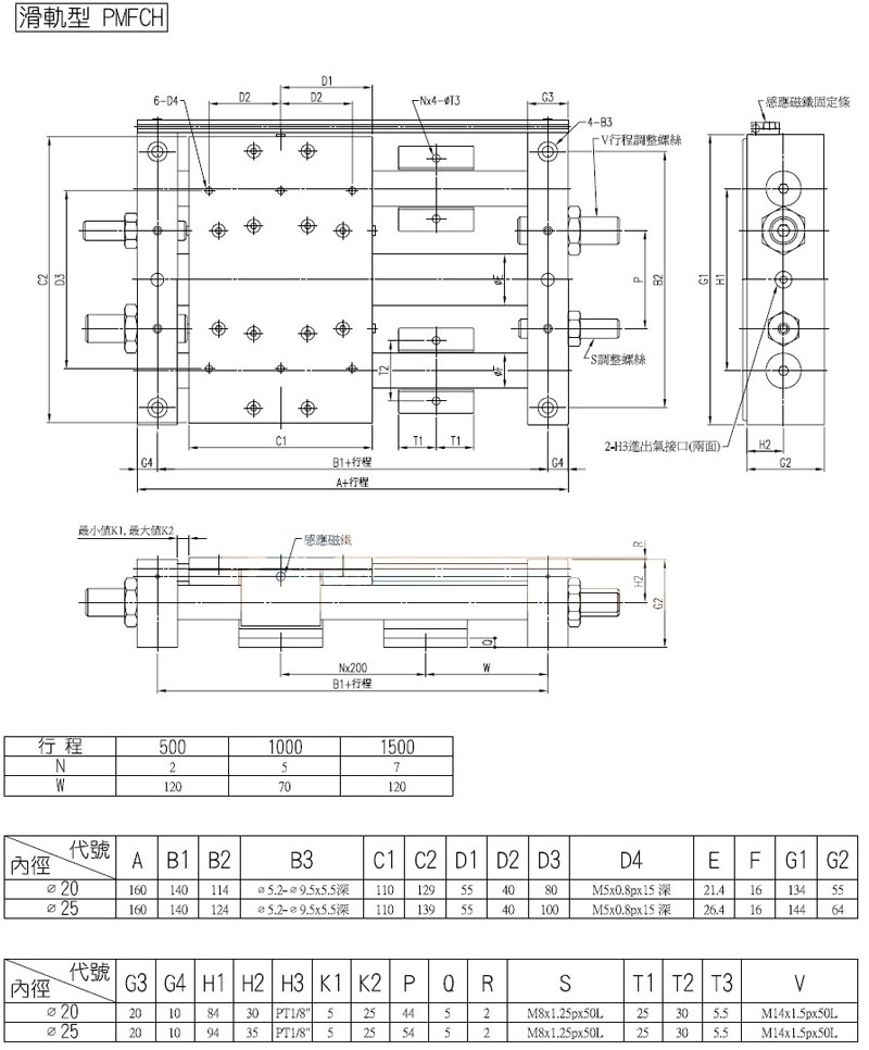 | PMFCP-20,PMFCP-32,PMFCG-20,PMFCG-32,PMFCH-20,PMFCH-32,panix磁浮式無桿氣缸 |
