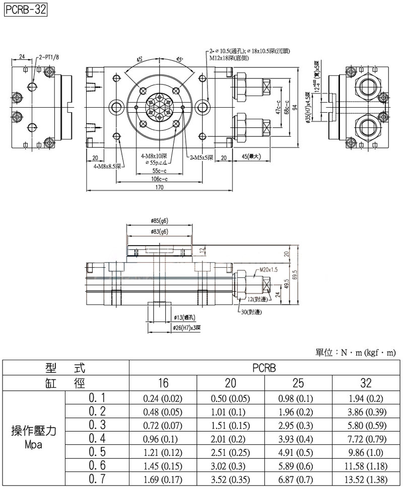 PCRB-16,PCRB-20,PCRB-25,PCRB-32,panix旋轉氣壓缸