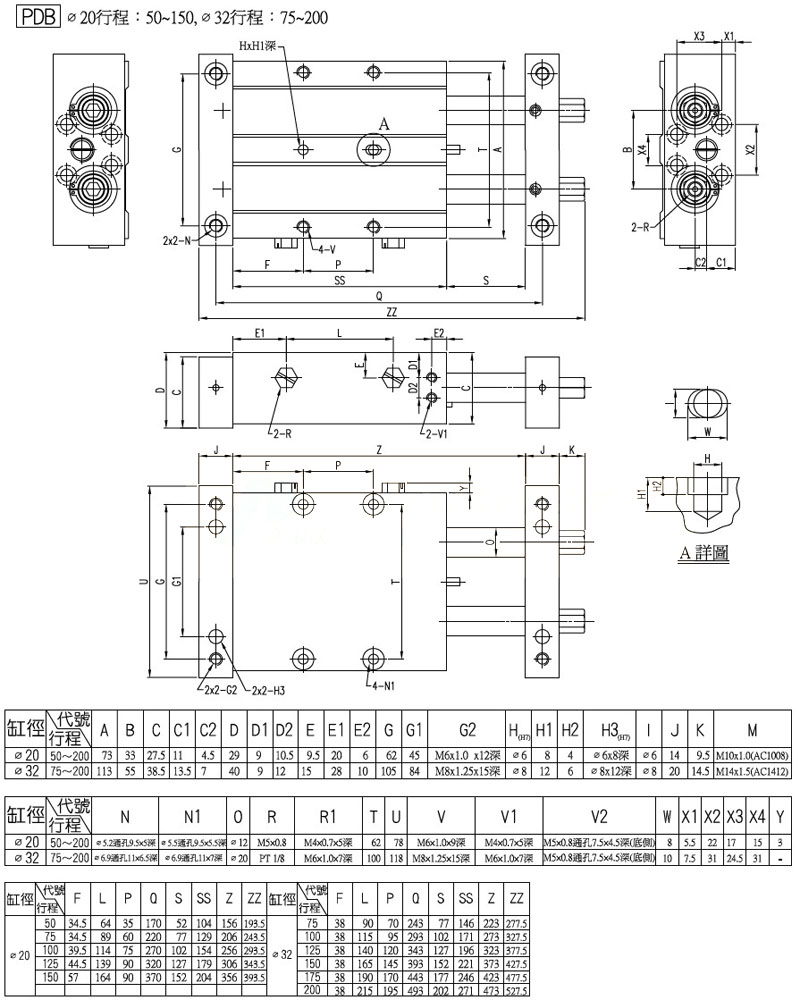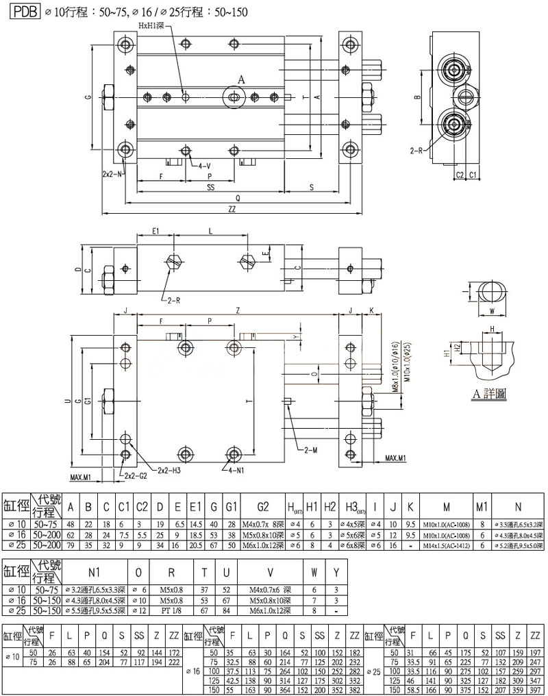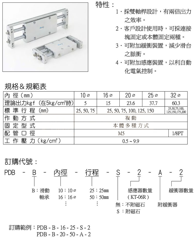 | PDB-B-10,PDB-B-16,PDB-B-20,PDB-B-25,PDB-B-32,panix滑動軸承式滑臺氣缸 |
