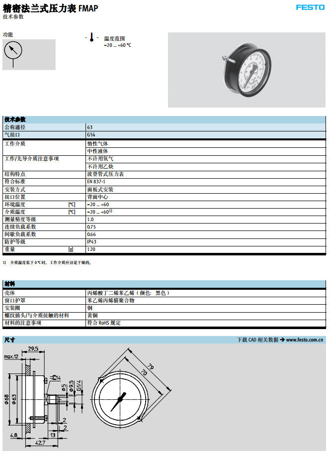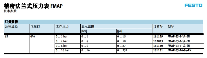 FMAP-63-1,FMAP-63-4,FMAP-63-6,FMAP-63-16,festo法蘭式壓力表