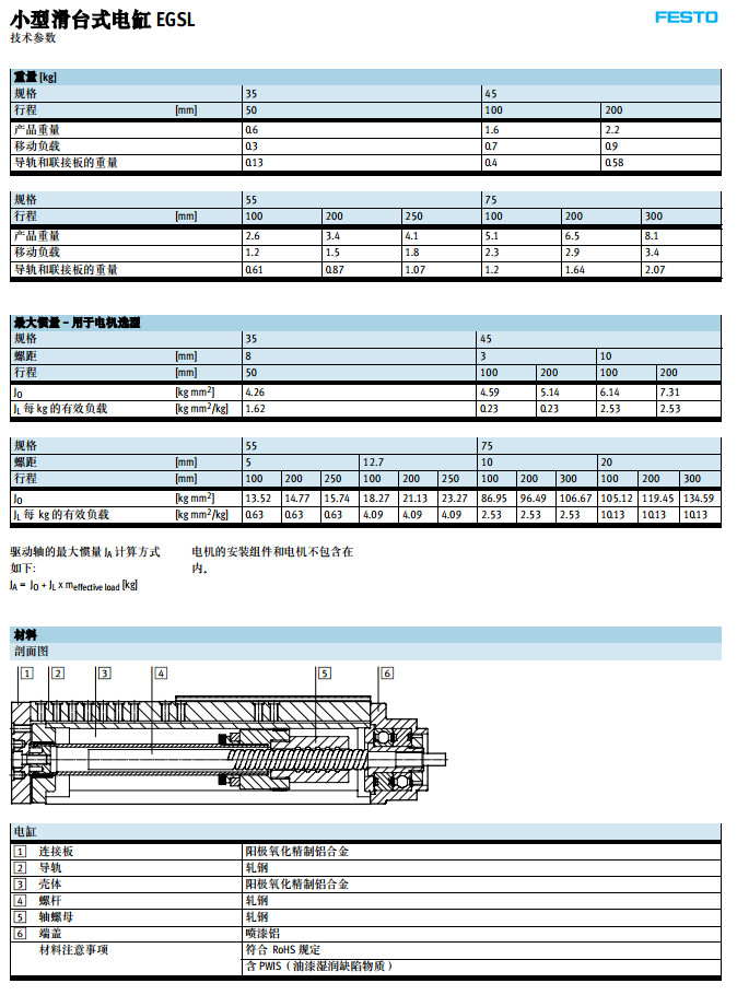 EGSL-BS-35,EGSL-BS-45,EGSL-BS-55,EGSL-BS-75,festo小型滑臺式電缸 |