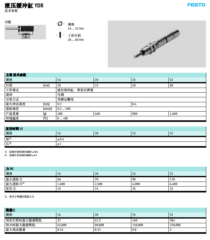 YDR-16-20,YDR-20-25,YDR-25-40,YDR-32-60,festo液壓緩沖器