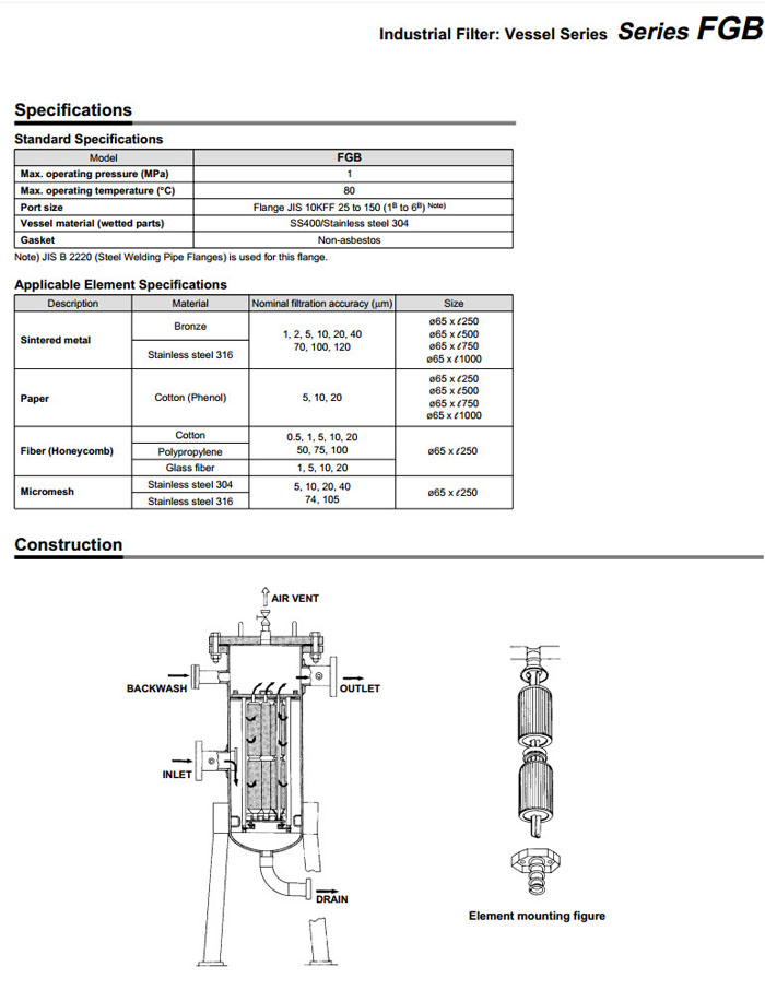 FGBS04,FGBS07,FGBS09,FGBS18,FGBS22,FGBS29,FGBS34,FGBS37,FGBS53,FGBS83,FGBS83D-60,SMC工業(yè)用過濾器 |