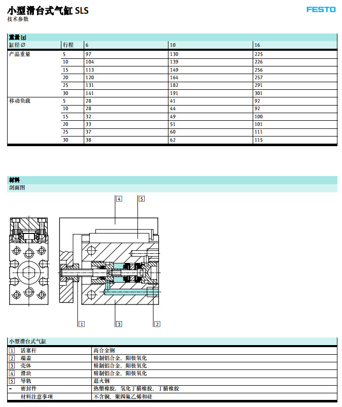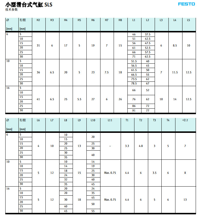 | SLS-6-5,SLS-10-5,SLS-16-5,SLS-6-10,SLS-10-10,SLS-16-10,festo小型滑臺式氣缸 |