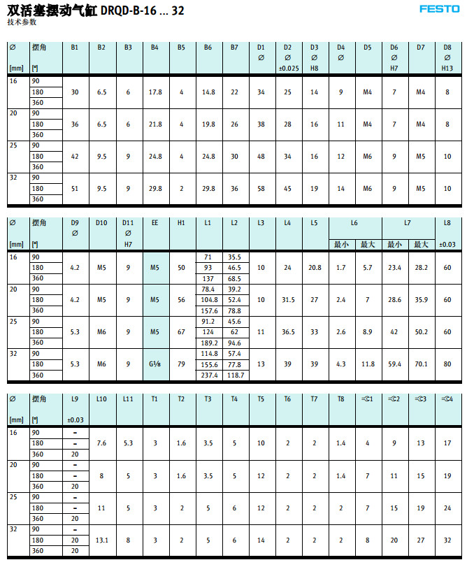 DRQD-B-16,DRQD-B-20,DRQD-B-25,DRQD-B-32,DRQD-B-40,DRQD-B-50,festo擺動(dòng)氣缸
