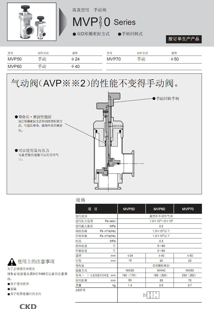 MVP50-25K,MVP60-40K,MVP70-50K,CKD高真空用手動閥