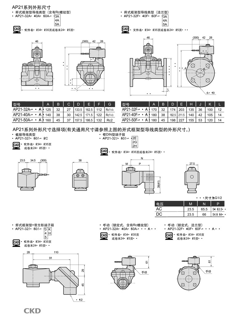 AP22-32A,AP22-32F,AP22-40A,AP22-40F,AP22-50A,AP22-50F,CKD先導(dǎo)式2通電磁閥