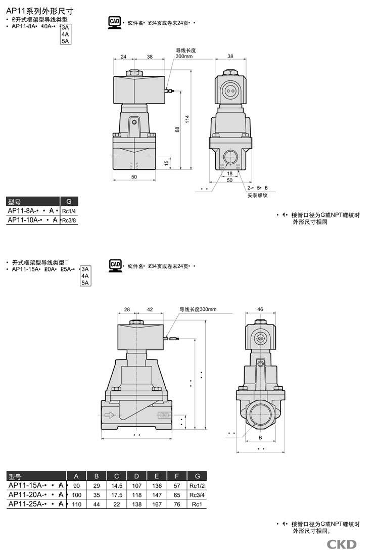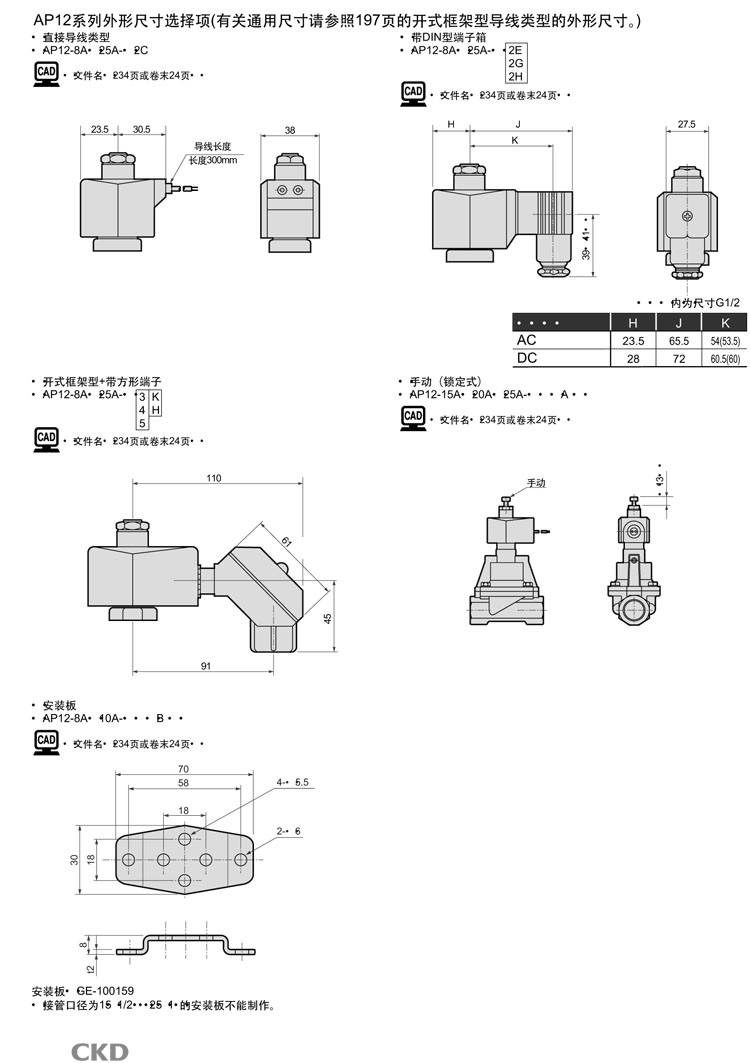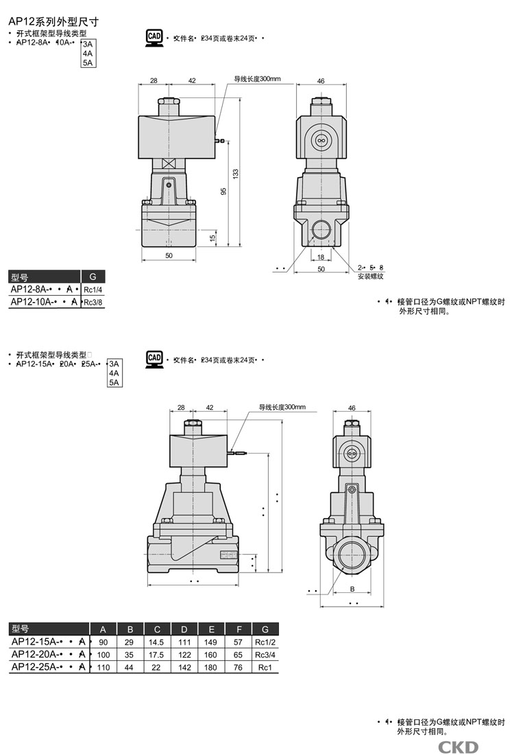 AP12-8A,AP12-10A,AP12-15A,AP12-20A,AP12-25A,AP12-10A-B3H,CKD先導(dǎo)式式2通電磁閥