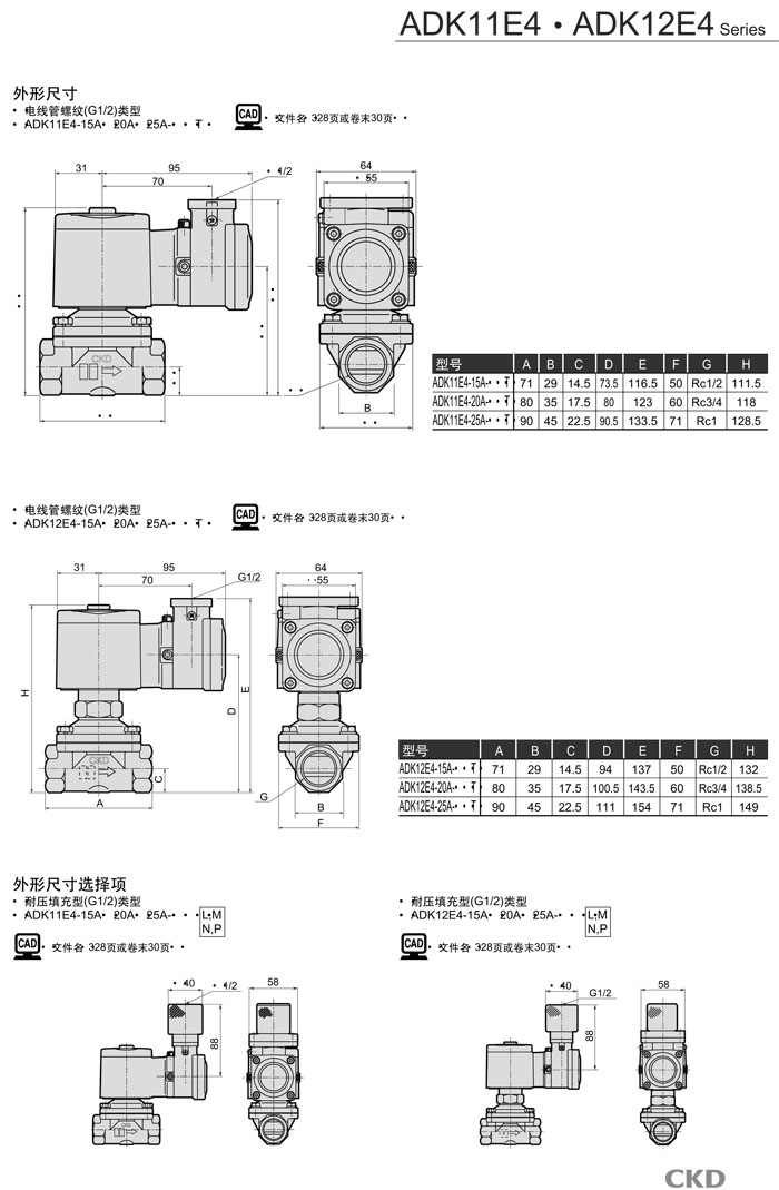 ADK11E4-15A,ADK11E4-20A,ADK11E4-25A,ADK12E4-15A,ADK12E4-20A,ADK12E4-25A,CKD先導(dǎo)式2通電磁閥