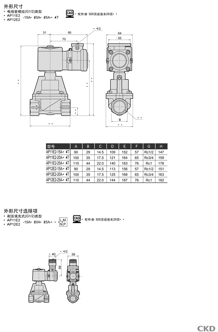 AP11E2-15A,AP11E2-20A,AP11E2-25A,AP12E2-15A,AP12E2-20A,AP12E2-25A,CKD先導(dǎo)式2通電磁閥
